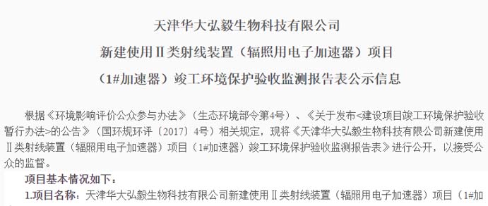 桂林華大生物科技有限公司使用電子加速器輻照項目 竣工環(huán)境保護驗收信息公示